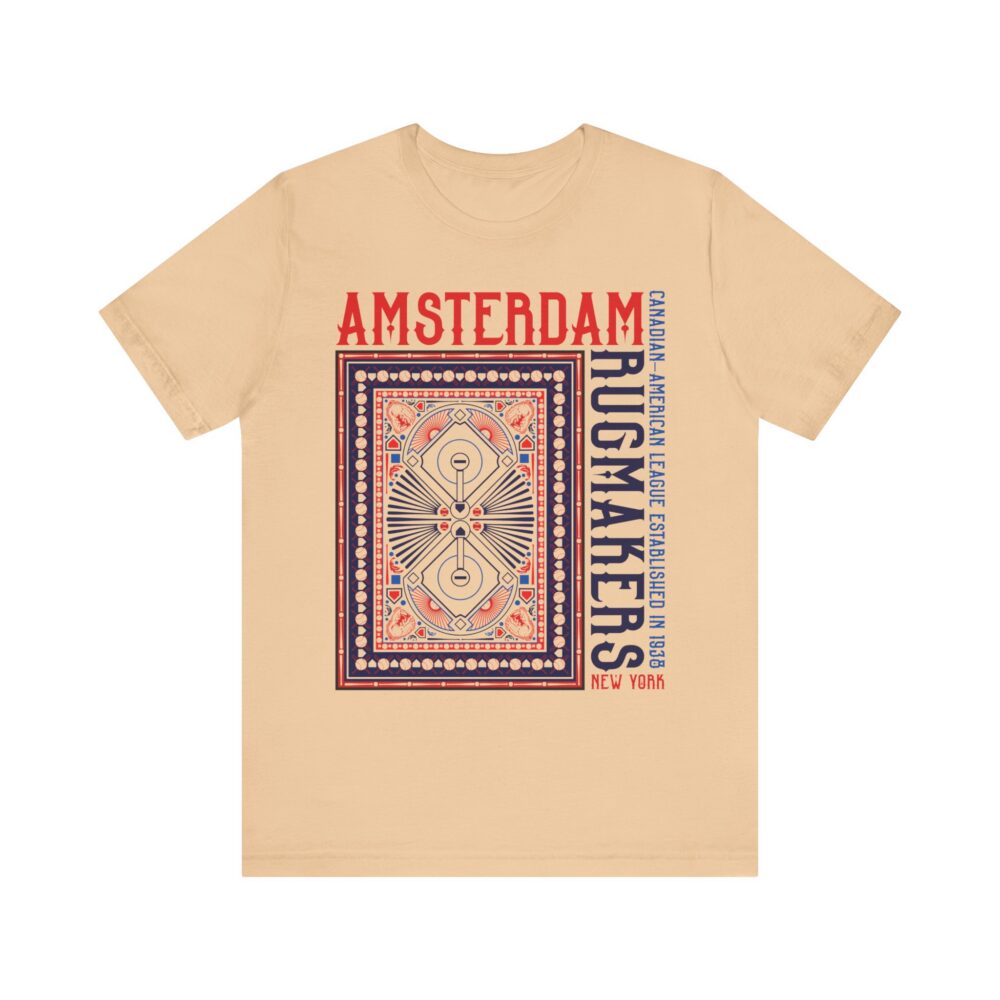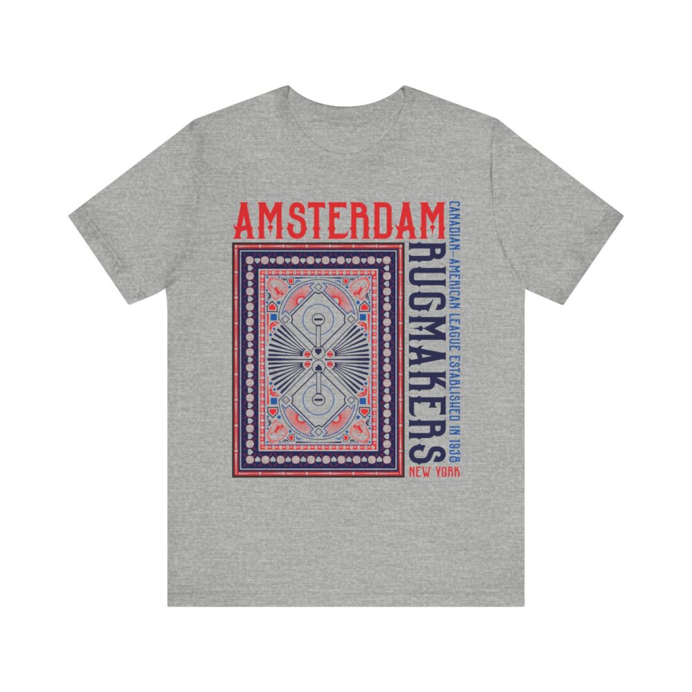 Amsterdam Rugmakers Baseball T-Shirt brings a bold, graphic twist to the legacy of New York’s 1938 minor league team from the Canadian–American League. Featuring a stylized layout inspired by vintage rug patterns and classic typography, this shirt pays homage to the team’s namesake with an artistic edge. Whether you’re a die-hard baseball historian or just love rare team nostalgia, the Amsterdam Rugmakers Baseball T-Shirt is a standout tribute to a forgotten classic.